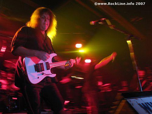 Skratka, v pričakovanju odličnega koncerta, smo sedeli v preddverju kluba, z najbolj ogabnim pivo, ki sem ga kdajkoli privoščil svojim brbončicam. Kakršnekoli obširnejše degustacije so torej odpadle, na srečo pa smo že prišli na vrsto za intervju s legendarnim kitaristom zasedbe Symphony X, na katerega nas je prijazno povabil tour manager Ron, in spomin na avstrijsko brozgo, ki ji pravijo pivo je hitro zbledel. Med intervjujem je na oder stopila že prva predskupina, avstrijski progresivni metalci Excitone, ki so nas želeli ogreti s svojim polurnim setom. Fantom to ni povsem uspelo, predvsem sem pogrešal vokal, ki bi lahko klišejski progresivni metal sestavljen iz pasaž, ki zvenijo kot slaba kopija Dream Theater ali Symphony X. Predvsem kitarist dlje od preigravanja lestvic, pa čeprav mu gre hitrost še kako zavidati, ni prišel, kakšna zanimiva domislica pa je pri Excitone prej utopija kot ne. Še najbolj se je izkazal klaviaturst, ki je z nekaj posrečenimi deli razgrel tudi publiko. Polurni set Excitone se je na srečo hitro zaključil, kot pravega konzolastičenga nostalgika pa so me zelo prijetno presenetili z medleyem iz kultne Super Mario Bros. Dobil sem hudo željo po žretju gob…