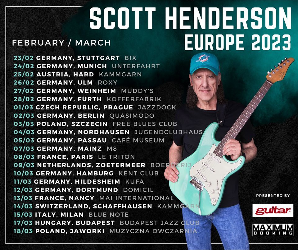 Na turneji, ki se začne 23. 2. 2023 v nemškem Stuttgartu in sklene 18. 3. 2023 na Poljskem in tamkajšnjem kraju Jaworki, bo Scott Henderson nastopal v formaciji tria, pri čemer mu bosta na odru delala družbo Roman Labaye na bas kitari in Archibald Legonniere na bobnih.