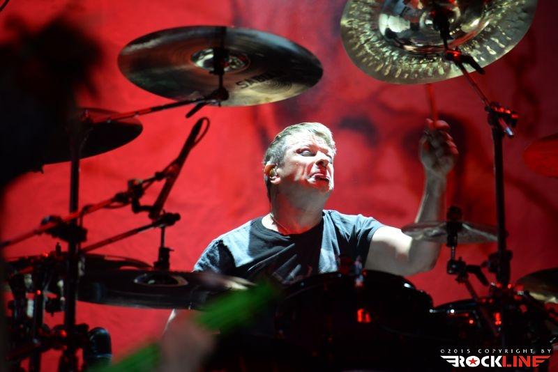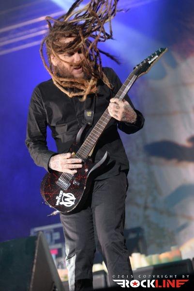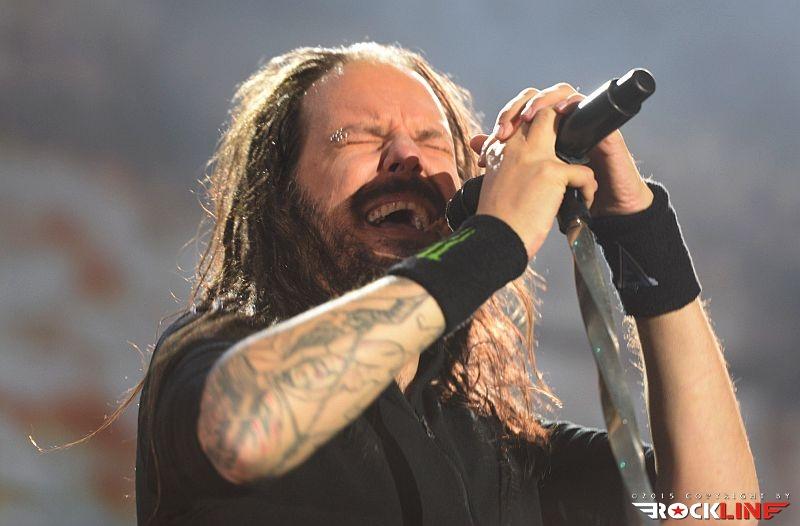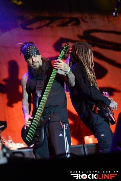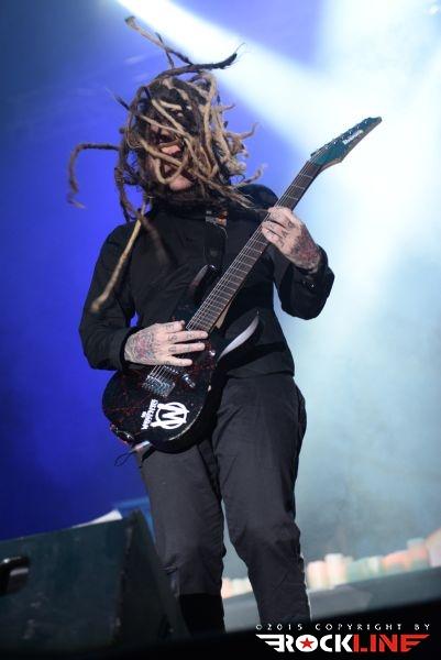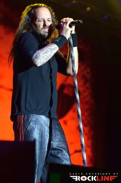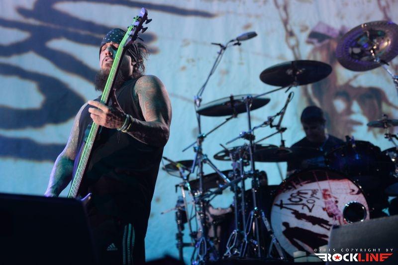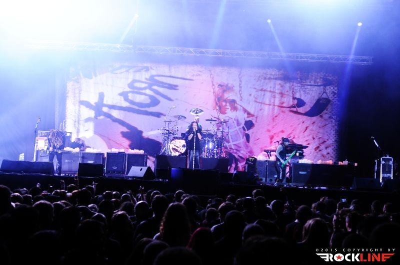 KoЯn, skupina iz povsem drugega testa, so posledično s svojim stasom in glasom privedli pred oder povsem drugačno publiko. Predvsem mlajšo generacijo. Korn je pripadlo 70. minut igralnega časa, zato so zaradi časovnih omejitev sčrtali iz set liste skladbi Here to Stay in Freak On the Leash. Oder scensko stiliziran in poln sveč. Uvodne minute koncerta so pripadle bobnarju Rayu Luzierju. Svoje pozicije polagoma zasedejo Brian »Head« Welch (na levi), James »Munky« Shaffer (na desni) in Reginald »Fieldy« Arvizu med bobni in Welchem (spet na levi). Skupini je na odru delal družbo tudi koncertni klaviaturist Zac Baird. Skozi lepo bero sproduciranega odrskega šundra je naposled zasedel centralno pozicijo na odru vokalist Jonathan Davis. Zanimivo pri tem pa je, da Davis ni imel svojega stiliziranega stojala za mikrofon v obliki kobre, pač pa povsem običajnega. Davis, odet v temno vijolično »šuškavo« trenirko z oranžnimi Addidas črtami, se je kaj hitro vživel v vlogo »badass« pobalina, pa tudi žrtev mesenega poželenja. Ob stojalu se je občasno dobesedno tresel ob vsej vživetosti, ki jo je evocirala njegova srborita naglica v jemanju verzov. Alternativno metalska formacija ostaja odrska senzacija. Igra namreč fenomenalno. Uigrano, masivni zvočni zid je podprt z občasno kompleksneje »rešljivimi« ritmičnimi zankami, kjer pa se obenem najde vse polno prostora za zapeljivi »groove«, ki povleče nase. Bend je popestril izvedbo točk. Skladba Ball Tongue je denimo vsebovala delčka skladb It Takes Two (orig. Rob Base & DJ E-Z Rock), medtem ko so Korn vpeli v drugi refren skladbe Need To refren skladbe Alive. Prodoren in vražje napet koncert poln groove šundra in pobalinske spotakljivosti. Korn ohranjajo visoko atraktivno pozicijo med skupinami modernega, alternativno in prožno eksperimentalno usmerjenega metala. Izredna predstava.