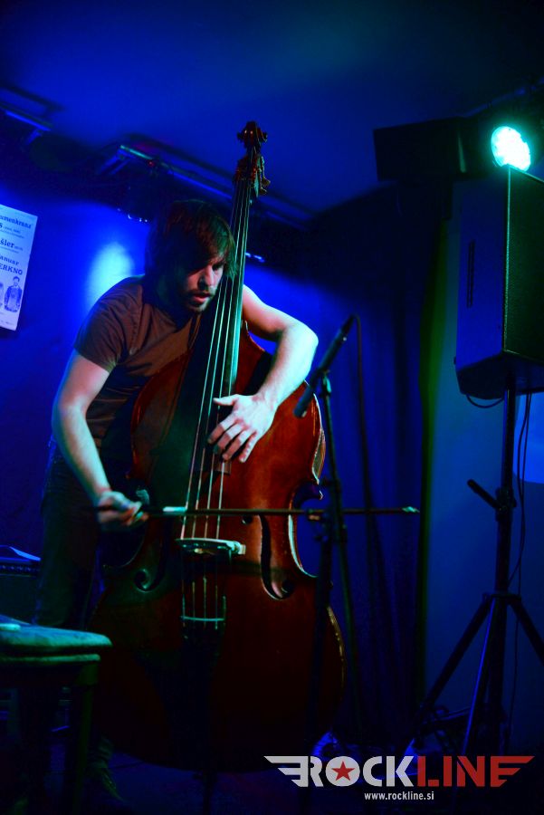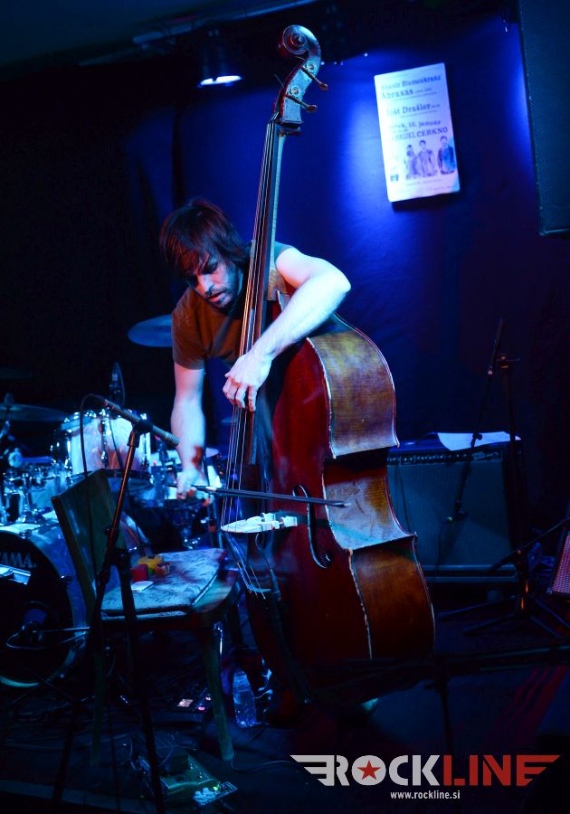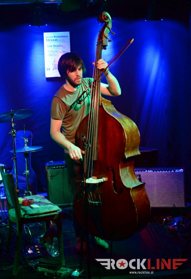 Za uverturo v plutje skozi edinstvena zvočna prostranstva Johna Zorna, v režiji Blumenkranzovih Abraxas, je v vlogi »predvozača«, poskrbel slovenski basist Jošt Drašler. Jošt je v s konkretno minutažo obteženem nastopu, predstavil svoj solistični prvenec »The Balloon Catcher«. Da spraviš od sebe album, ki ga striktno igraš samo s kontrabasom sta pomembni dve zadevi. Moraš biti drzen oziroma pogumen, ter zelo, zelo dober in večplastno izpiljen glasbenik, ki mu je pojem omejevanja povsem tuj. Jošt ni novo ime na sceni. Je cenjen in iskan glasbenik. Tako dober je namreč. Vpisal se je na različna sodelovanja, v raznolikih glasbenih okoljih in je v zvezi s tem silno okreten in spreten, ko je treba plavati v različnih žanrih, ali medžanrski fuziji (stapljanju). Čuti se, da je Jošt šola Zlatka Kavčiča. Podobno kot Zlatko na svojih bobnih, izkorišča Jošt celo telo kontrabasa, pravzaprav vsak kvadratni centimeter le tega. Bodisi, da gre za »šponerje« (navijalce), ki jih med igro namerno navija in odvija, bodisi da grebe z lokom vse povsod in ga zatika za strune (vsepovsod po instrumentu), ali preprosto mlati in trka kamor padeta levica in desnica v danem trenutku na telo kontrabasa. Vse to je namreč eksperimentalni podaljšek, ki širi klasični izpovedni jezik jazzovskih improvizacij na kontrabasu. Brez teh t.i. ekscesov, ki obkrožajo klasično igranje instrumenta, bi bil Joštov jezik mnogo manj sočen in nastop vsekakor pol manj dinamičen ter izpovedno seveda tudi dolgočasen. Tako pa vse prej, kot to! Kanonada absolutne prostosučne improvizacije, ki mu poveljuje moment, ki ga narekuje trenutni navdih, modus, v katerem se znajde genij glasbenika, pelje predstavo v povsem neobičajni, spontani maniri, z izdatnim elementom presenečenja. Popolna improvizacijska igra, kjer je Jošt našel samega sebe, da se polnokrvno izrazi in kjer ni »okalupljen« v določena pravila igre, kot bi jih generiral nek glasbeni slog, ali žanr. Preprosto. Jošt se je tega večera predstavil v sebi lastnem izzivalnem glasbenem okolju, ki ga sicer zelo dobro obvladuje, a ga hkrati vseskozi odkriva in osvaja, če razumete kaj želim povedati. Ko raziskuješ neodkrito, neosvojeno in ti to odkrivanje odzvanja domače. Poslušalci s(m)o torej že uvodoma zaglodali v konkretno glasbeno kost, ki nam jo je samoniklo vrgel izvrstni Jošt Drašler.