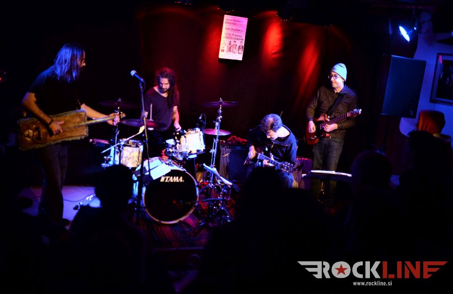Rondo izjemne mešanice oziroma glasbenega mozaika, ki se je loteval neverjetne avantgardne fuzije jazza z arabskim melosem (»arabeskami«) ter skrajno ubrisanimi arabskimi ritmi, ob katerih si v trenutku polomiš obe nogi. Vskoki že skoraj rušilnih rockovskih eskapad, za katere sta zvočili bolj »mastna« Gibson SG kitara in nekoliko »preciznejša« Telecasterica, ob hkratni instrumentalni utrganosti, kjer je jemalo sapo samo opazovanje, kako koherentni so v medsebojnem kemičnem učinkovanju Abraxas. Vsa ta opreznost, čuječnost, fokus, zbranost, osredotočenost drug na drugega, je preprosto skrajno fascinantna. Toliko kompleksnosti in ekscesa, ki vzbuja občutek popolne spontanosti, namreč vodi popolna konciznost članov kvarteta. In to je nekaj izjemnega. Shanir v vlogi absolutnega dirigenta, ostala trojica vseskozi z očmi uprtimi vanj. Neverjetni bobnar Kenny Grohowski je deloval kot hobotnica z osmimi lovkami, ko je izvabljal iz osnovnega seta bobnov prave čudeže. S peresno lahkoto. Neverjetne ritmične teksture, prelivanja med njimi, pavze, ki jih ne pričakuješ, udarci »med udarci«, kitare istočasno v povsem drugem ritmu, kot bobni,… Toliko improvizacijske usekanosti, ki je vpeta v popolno simbiozo glasbenega telesa komba Abraxas, da je to nemogoče opisati v kakršnikoli poglobljeni »ekspertizi« (recenziji koncerta). Splačalo se je poslušati koncert miže. Magnifikacija občutij, ki jo izvablja to dejanje poslušalca, je bila tokrat ob vsem opisanem glasbenem “čudaštvu”, še posebej intenzivna. Na trenutke delujejo Abraxas, kot demonski orkester, ki ruši prav vse šablonske bariere in neverjetno je koliko zvočnega prostora pri tem zapolnijo. Kitari Arama Bajakiana in Eyala Maoza sta, ob vsej imenitnosti, na trenutke lahko plazovito grmeli, se na znak ustavili, prostor so v tem času prerešetali bobni, temu je sledil nov blasfemični plaz obeh kitar, ki sta nagovarjali v povsem drugačnem zvočnem okolju ter se v tem genialno harmonično dopolnjevali ter tako zapolnjevali razpoložljiv zvočni prostor.