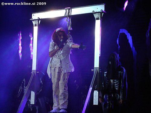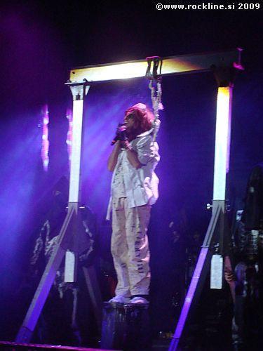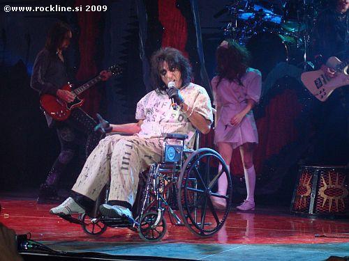 Kakšen “show man” zna biti Cooper! Zares ni presenetljivo, da je šel nekoč v nos konzervativnim sodržavljanom, ko pa na odru izvaja dih jemajočo predstavo, ki človeku naježi prav vse dlake na telesu! Nabor koncertnih pripomočkov je zelo pester, od zabavnejših balonov do malo manj zabavnih pripomočkov, ki bi bolj spadali v Tallinnski muzej mučilnih naprav. Višek teatralnosti koncerta nastopi proti koncu, ko ob bučnem godovanju publike glavnega akterja zgodbe teta smrt popelje do vislic, kjer ga za vedno vzame v svoje roke…