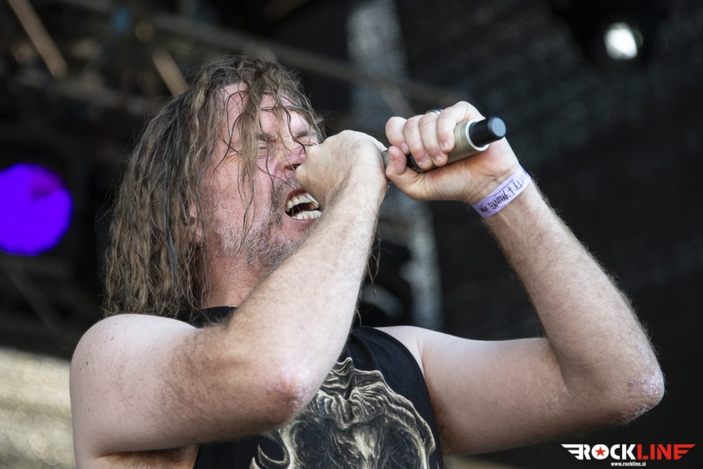 Cattle Decapitation so v zadnjih desetih letih precej več po turnejah in prav tako so se nekajkrat ustavili tudi v Sloveniji. Navdušili so tako v sklopu festivala kot tudi samostojno v klubu. Skupina je tokrat končno uspela tudi v Evropi predstaviti skladbe z zadnjega albuma Death Atlas, ki je izšel leta 2019. Ko je bila njihova turneja Bring Back The Plague ironično odpovedana zaradi pandemije, so Cattle Decapitation rabili kar dolgo, da so se vrnili v Evropo. Logično je bil skoraj celoten repertoar osredotočen na zadnji album, ki seveda ohranja brutalen stil skupine. Skupina v vseh letih še ni popustila, cela nadgradila se je z dodatnim kitaristom, tako da bil zvok precej bolj poln kot na zadnjem obisku pri nas. Cattle Decapitation še vedno stavijo na brutalnost, posebnež je seveda vokalist Travis Ryan, ki se je med drugim pri eni skladbi pljunil v roke in si seveda svoj produkt razmazal po obrazu. Očitno mu apetita res ne primanjkuje. Predvsem je ob kitarski preciznosti treba pohvaliti tudi ritem sekcijo. Basist Olivier Pinard je s svojimi linijami še dodatno zapolnjeval zvočno sliko, medtem ko na bobnih je dominiral izredno hiter in natančen David McGraw, ki je blastal večino repertoarja. Tudi sam zvok se je malo popravil, tako da CD niso zveneli preveč kaotično in brez glave in repa. Vsekakor so CD poskrbeli za vrhunec brutalizacije na tem dogodku.