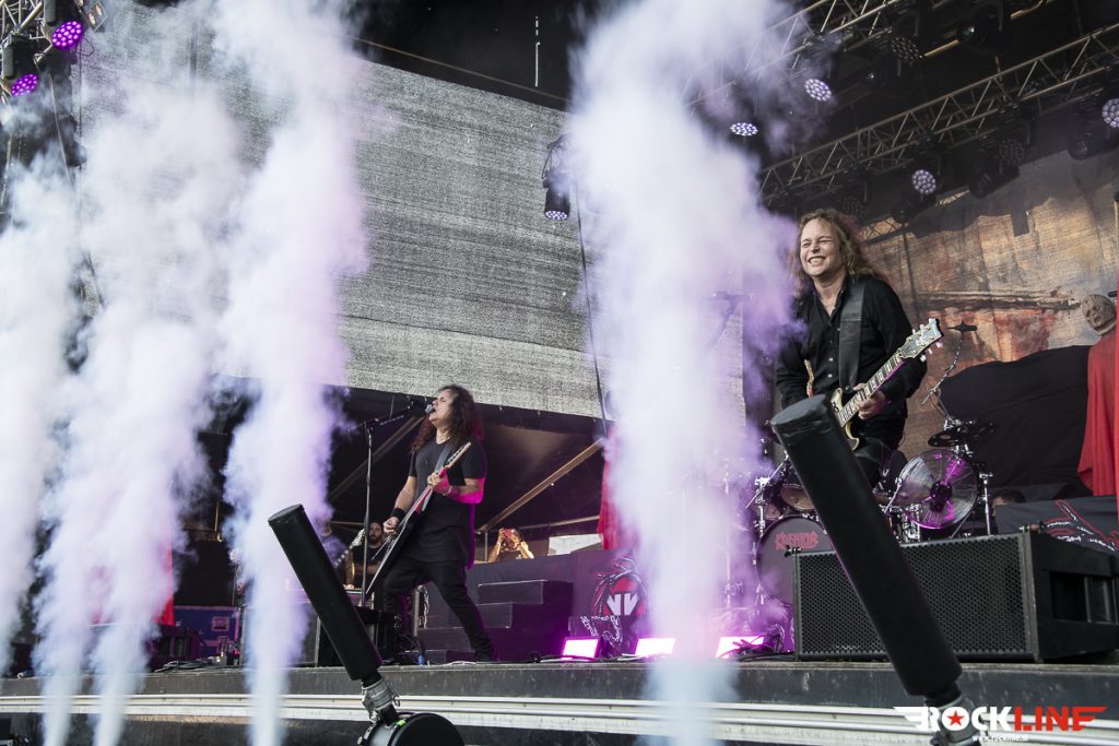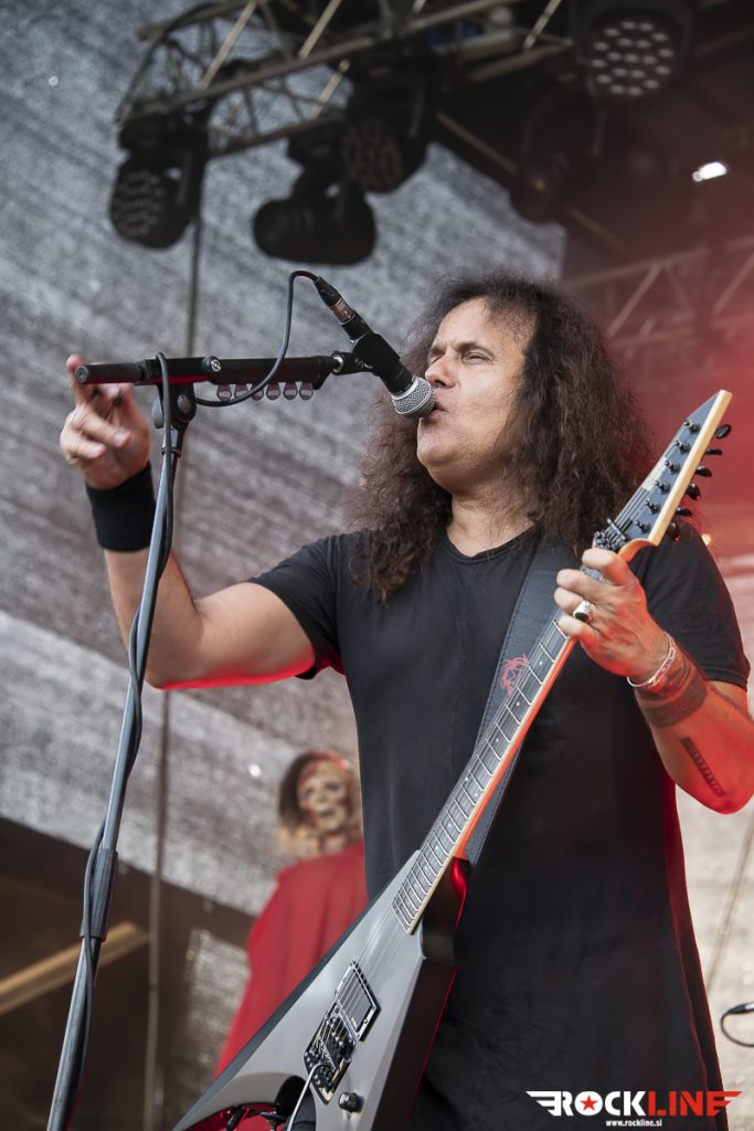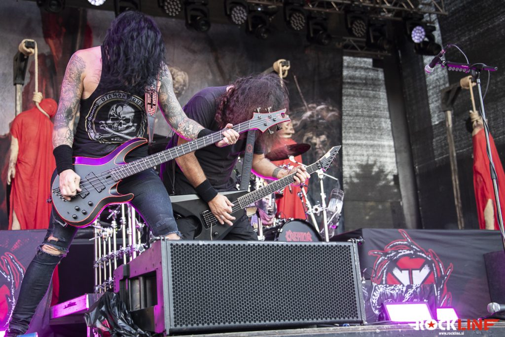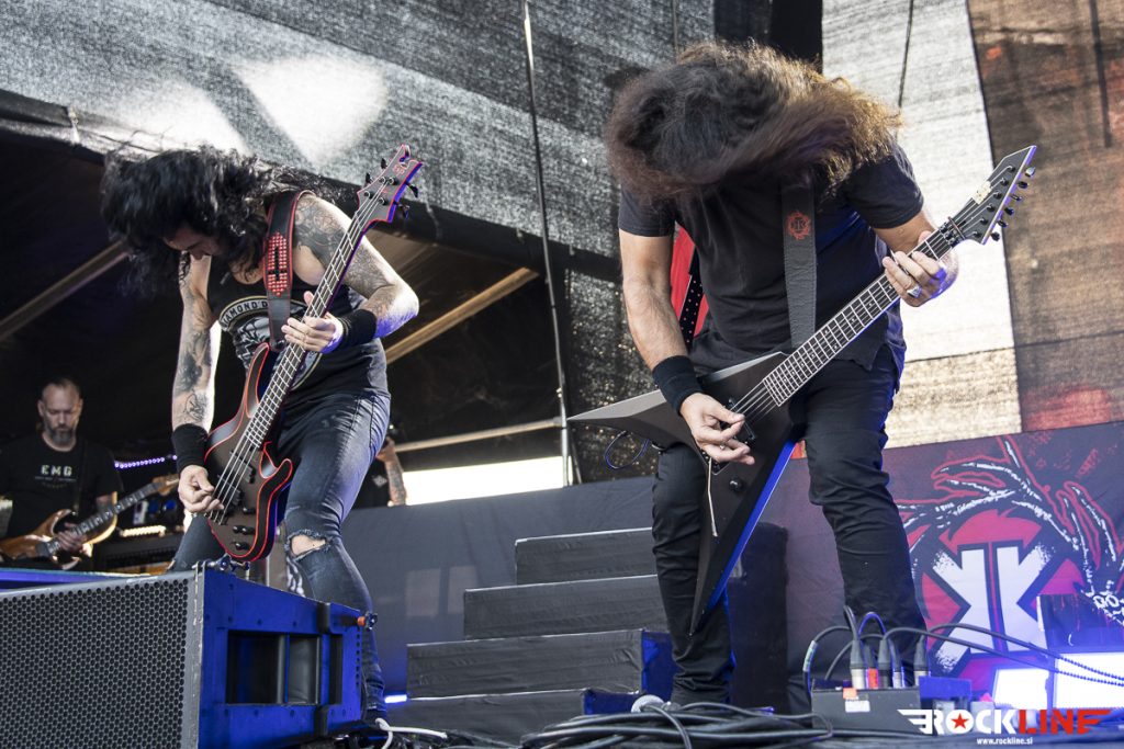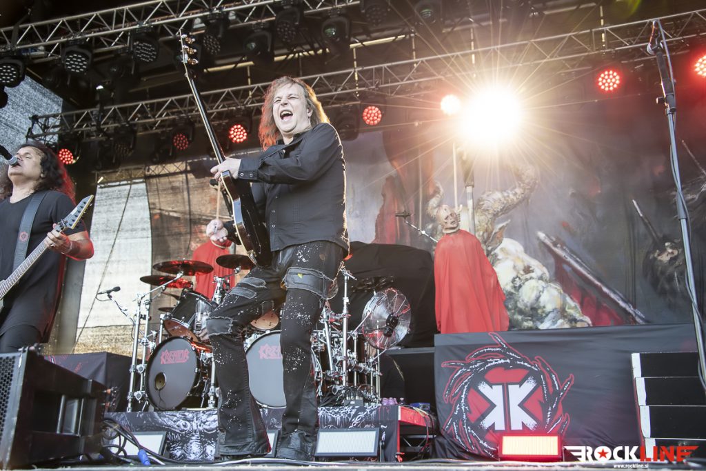 Kot predzadnji so nastopili Kreator, ki so se v zadnjih dvajsetih letih ustavili v Sloveniji mnogokrat. Kreator je bilo pravzaprav težko izpustiti, ker so bili tu praktično ob vsaki priložnosti. Od zadnjega obiska pa so Kreator uspeli ustvariti nov album, zamenjali pa so tudi basista, in sicer pri Kreator sedaj bas kitaro igra Frédéric Leclercq, ki si je poprej služil kruh pri Dragonforce. Kreator bodo počasi upihnili 40 let, kar je vredno vsega spoštovanja, da skupina vztraja v thrash metalu toliko časa. Predvsem je treba tudi pohvaliti formo, resda niso več tako energični kot nekoč, vendar ni njihov nastop ni deloval rutinsko. Ni bilo pa nekih presenečenj v repertoarju. Kreator so namreč odigrali bolj kot ne festivalsko best of setlisto, tako da so bili zajeti zimzeleni hiti, kot so Violent Revolution, Enemy of God, Hordes of Chaos, Phobia, Phantom Antichrist itd. Nekaj promocije je doživel tudi letošnji album Hate über alles, ki vsebuje kakšno presenečenje, a Kreator so stavili bolj tipičen slog in tudi klišeje, kot je recimo skladba Strongest of the Strong. Kreator so žal predstavili krajši repertoar, ker jim tudi ni pripadlo mesto glavne skupine, tako da bo za kaj daljšega potrebno počakati na novo turnejo. Zaključek pa je bil v znamenitem Kreator slogu z zimzeleno Flag of Hate in legendarno Pleasure to Kill. Kreator so svojo nastop opravili korektno, kakšen kiks je sicer bilo zaznati, še posebej bobnar Ventor zna bit malce nenatančen na momente. Kitarski dvojec Petrozza in Yli-Sirniö pa je znova prepričal. Slednji še posebej zaradi svojih melodij in soliranja. Kreator nedvomno še niso za odpis. Ne bi pa škodilo, da bi malce osvežili svoj repertoar s kakšno neočitno skladbo.