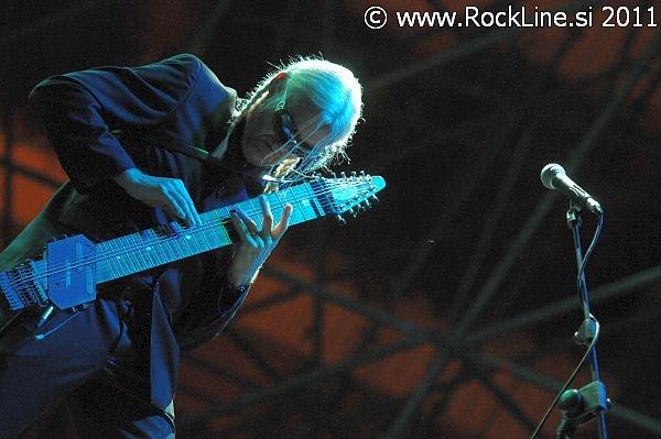 Natanko po letu dni, od njegovega nastopa v Trstu, se ob deveti uri in petdeset minut zatemni oder, ko se zaslišijo uvodni zvoki nasnete Last Train To Istanbul. Po dobri minuti uvoda prikorakajo glasbeniki na oder. A glej ga zlomka. V postavi manjka Amanda Lehmann, sicer Steveova ritem kitaristka in spremljevalna vokalistka. Ob Steveu stoji torej na odru standardni četverec Gary O’Toole (bobni, vokal, spremljevalni vokal), Robert King (klaviature, spremljevalni vokal), Rob Townsend (pihala, spremljevalni vokal) ter ekstravagantni basist in spremljevalni vokalist Nick Beggs. Slednji se prav tako na odru ne sramuje izdatne rabe Chapman Stick-a.