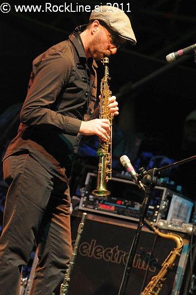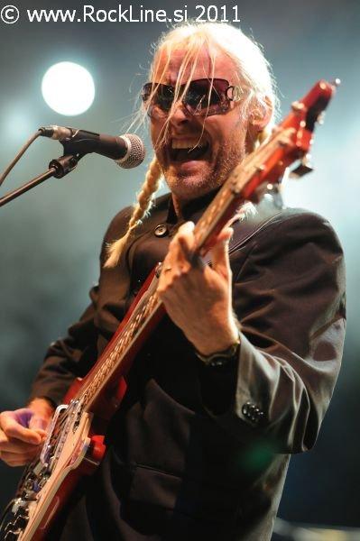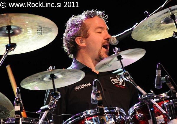 In seveda tisto najbolj pomembno pri vsem tem. Genesis! Glasba Genesis iz obdobja Steveovega udejstvovanja pri teh velikanih in enih izmed utemeljiteljev prog rockovske obrti. Glede na bolj ali manj zaslužen “spanec” glavnih obrazov te pionirske skupine, sta Steve Hackett na eni strani in Ray Wislon na drugi, pravzaprav edina izvajalca, ki preigravata Genesis glasbo danes na odru. Vsekakor je dotik Hacketta mnogo pristnejši in bližji izvirniku, kar je povsem samoumevno. Z enim stavkom. Steve mora igrati Geneiss, sicer bi privabil na koncerte več, kot pol manjše število obiskovalcev. Prav težko funkcijo so nadeli Garyju O’Tooleu. Mož je moral skrbeti za vse vokale Petra Gabriela in Phila Collinsa. Manj posrečen v vokalni izvedbi Gabriel era Genesis klasik Watcher Of The Skies, Carpet Crawlers in Fly On The Windshield. Seveda je utopija iskanja kopije originalu to pot, je pa O’Toole z barvo povsem kompatibilen. Še najbolj posrečeno je v njegovem vokalu izpadla izvedba Blood On The Rooftoops, ki jo je Hackett uvodoma motivsko prelil preko akustične točke in posredno skozi še eno Genesis točko – Horizons. Firth Of Fifth je Genesis klasika, ki je načela dodatek. Ta je bila izvedena v celoti. Magija, kateri je nadel lesk atmosferičnega vrhunca ravno Steveov monumentalni kitarski motiv. Ta bazira na vsega nekaj tonih, vendar izjemno vzdržljivega ječavega sustain efekta, ki vzbuja prave transcedentalne občutke. Glasbeniki so poskrbeli za zvočni približek izvirnikov. Če si odštel O’Tooleov vokal, je na trenutke delovalo, kot bi bili z nami dejanski Genesis, seveda tisti rustikalni iz sedemdesetih. Celo igra svetlobe reflektorjev je povzeta v retro maniri v velikanov. In Los Endos? Natanko tako. Težje najdeš primernejšo točko za zaključek regularnega dela nastopa. In O’Toole jo je vokalno povsem lepo zabelil. Raba soprano saksofona služi za oporo vodilnim kitarskim linijam Stevea Hacketta, ki v izvedbi podvojuje in poudarja le te.