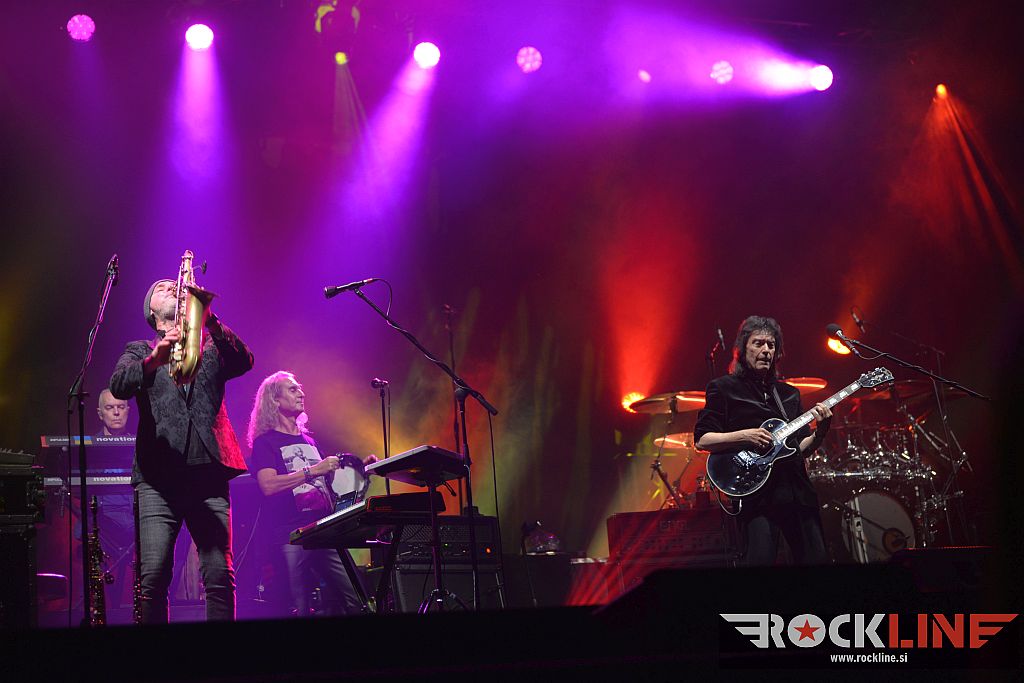 Ura je petnajst minut preko devete zvečer in s pregovorno natančnostjo se prizorišče ovije v temo. Ko so ljudje zaznali premike znanih silhuet na odru, so vzkipeli. Enovito in gromko so pozdravili Hacketta in ekipo. Sekstet zavzame položaje – pravzaprav kvintet – vokalist Nad Sylvan je vskočil na oder malo kasneje. Tu je. Prvi komad! People of the Smoke in predstavitev aktualnega samostojnega albuma »The Circus And The Nightwhale«, kjer je Steve prevzel vokal. Huronsko navdušenje med izbrano dobro tri tisočglavo množico! Ne Hackettovi levi Jonas Rheingold z rdečim Rickenbeckerjem, zadaj fenomenalni in vse iskani bobnar Craig Blundell (mdr. Frost*, Steven Wilson), na Hackettovi desni pa posebej zvesta pajdaša, klaviaturist Roger King in Rob Townsend, ki skrbi za vsa mogoča pihala, dodatne klaviature in tolkala. Formacija torej, ki ostaja že vrsto let nespremenjena. Zategadelj tudi neverjetno uigrana in naoljena. Zvok od prve udarjene note pa vse do zadnje – ta je odjeknila nekje ob pol noči, brezgrajen. Izvedba nič manj. Brez kiksa. No, vsaj v očeh in ušesih laika, ki se mu pišejo te skromne vrstice.