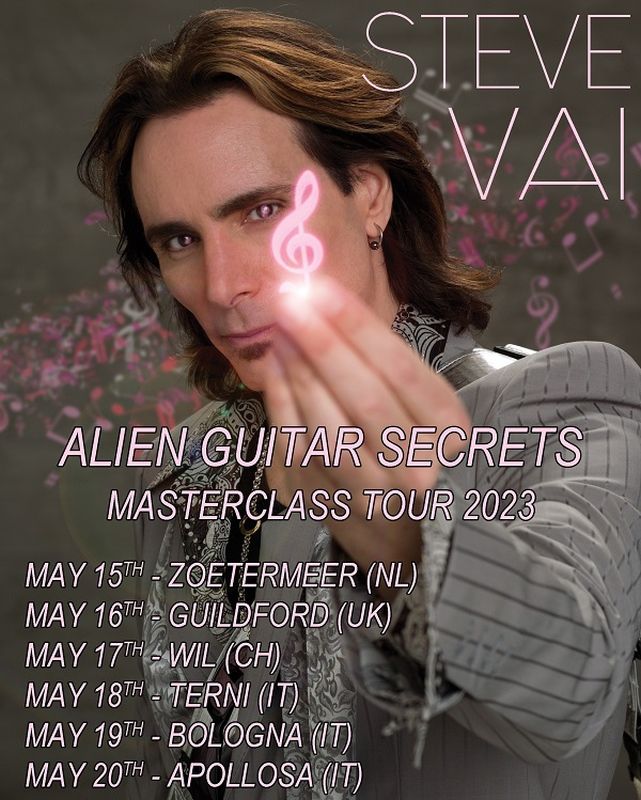 Vai bo sklenil svojo evropsko turnejo 7. 5. 2023 v finskih Helsinkih in tamkajšnjem prizorišču House of Culture, potem pa sledi nekaj dodatnih evropskih terminov “Alien Guitar Secrets” turneje v sklopu katere bo 19. 5. 2023 obiskal tudi Sloveniji najbližjo lokacijo s koncertom v italijanski Bologni.