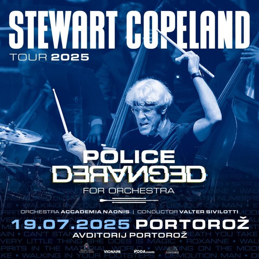 Legendarni Stewart Copeland, bobnar in soustanovitelj ene najvplivnejših rock skupin vseh časov – The Police – prihaja prvič v Slovenijo s svojim izjemnim projektom POLICE DERANGED FOR ORCHESTRA. Ekskluzivni koncert bo v soboto, 19. julija 2025, v čudovitem ambientu Avditorija Portorož.