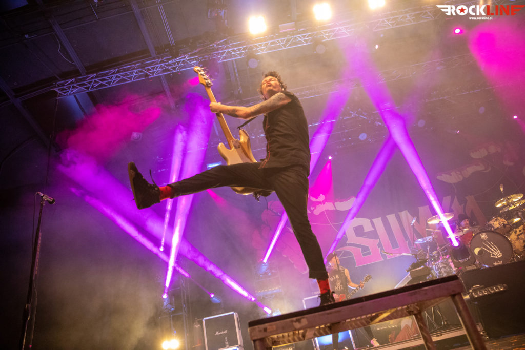 Stari odrski mački imajo svoj nastop dodelan do potankosti, tokrat so pričeli s komadom Turning Away in nadaljevali s prvo uspešnico večera Hell Song. Konfetov, dima in prepevanje publike seveda ni manjkalo. Sum 41 so že leta 2001 v svojem komadu Fat Lip povedali: »Heavy metal and mullets, it’s how we were raised, Maiden and Priest were the gods that we praised«. To se definitivno izraža na odru, kitarskih solov na Dunaju nikakor ni manjkalo, občasno so publiki pričarali občutek, da so na kakšnem metalskem koncertu kot pa na punk rock koncertu, kar se je seveda pri 13. komadu večera Fake My Own Death poznalo, saj je ta bil zaradi solaž kar dve minuti daljši, kot ga lahko najdemo na albumu. Za nežnejši spol so seveda postregli tudi z balado, ki so jo odigrali na akustične kitare.