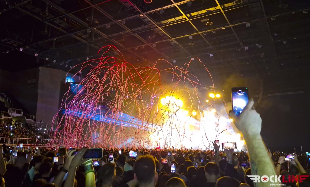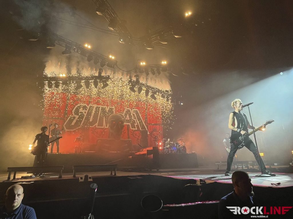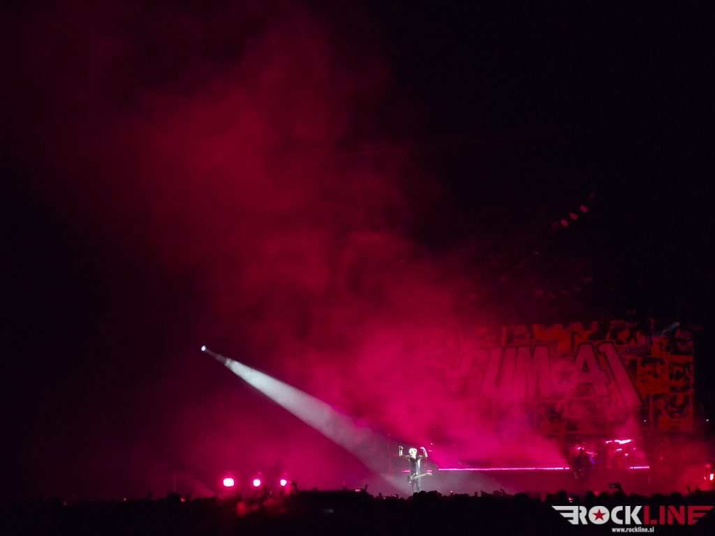 Kot se za SUM 41 spodobi, se je vse skupaj začelo s komadom »Motivation«, ki je že poskrbel za vzdušje podobno tistim, ki so značilni za zaključne dele koncertov te skupine. Ognjeni zublji na odru so poskrbeli za dodaten dvig temperature, medtem ko je na sredini že nastajal prvi circle pit. Prav nič ni pomagalo, da se je koncert nadaljeval s hitom albuma »Does this look infected« – »Hell song« (malce več o pomenu tega komada lahko izveste v ‘predhodni SUM 41 RockLine reportaži’ – OPATIJA 2023), ki pa je le dodal elan za Over My Head (Better Off Dead). ‘Lučkar’ je tokrat oseba, katera bi morala res biti izpostavljena, saj je do tretjega komada švical kot ‘mož pred ženo na plaži, okrog katerega poplesuje cel kup tangic’, da je vso perfekcijo igrivih dialogov reflektorske svetlobe, lahko izpeljal do konca! Takoj na začetku je bilo videti, da bo ‘lightshow’ tokrat res spektakularen! In bil je. Lahko bi si upal celo reči, da je bil najboljši SUM41 ‘lightshow’ zadnjih petih let.