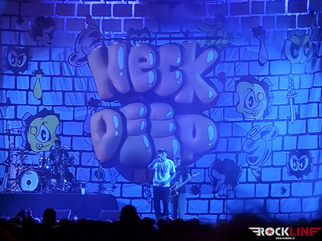 Tokrat so za SUM 41 publiko ogrevali valižanski punk rockerji Neck Deep, ki predstavljajo “mlajšo” generacijo bendov te zvrsti, saj so na sceno prispeli dobrih 10 let kasneje kot vsi velikani te scene. Neck Deep so sicer nastali leta 2012 vendar so svoj prvi album Wishful Thinking izdali šele leta 2014, ki pa je bil dovolj uspešen, da so se takratni člani skupine lahko polno posvetili pisanju nove glasbe. Neck Deep so morda največjo prepoznavnost dosegli leta 2019 ko si kot opening act ogrevali fene skupine Blink 182.