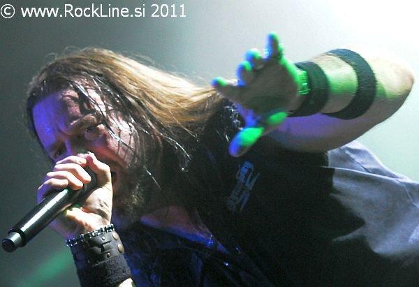 Ljudje pa so prišli v večinskem deležu seveda na koncert Symphony X. Pred odrom smo jih čakali do 21.35 ure. Oder se zatemni, ovije ga megla, po desnem balkonskem prehodu se vijugajo silhuete in sestopajo po stopnišču, ki vodi na oder. Evforija narašča. Prvi prispe na oder bobnar Jason Rullo, prvim vrstam pa se še posebej zabliska v glavah, ko priskaklja na oder kitarist in prvi heroj ter Symphony X ljubljenec občinstva Michael Romeo, saj se mu peščica razgretih Nemcev dobesedno priklanja z rokami sproženimi predse in globokimi predkloni. Te geste so vseskozi med koncertom večkrat ponovili, tako da je že pevec Russell Allen za hrbtom Romea bril norca iz sebe, oponašajoč taiste geste.