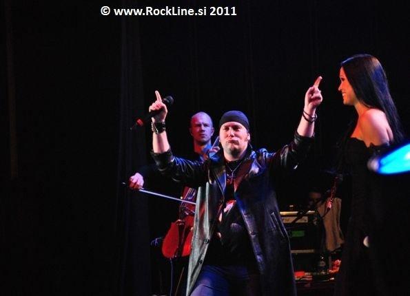 Ura je 10 zvečer. Prosojna tančica mične deviškosti zastira prosti pogled na oder. Dvorano ovije tema, ko se skozi nasneti intro na oder pomikajo drug za drugim člani spremljevalne zasedbe Tarje Turunen. Naštejmo jih takoj. Prvo ime je nedvomno eden najboljših metal bobnarjev na svetu Američan Mike Terrana (Axel Rudi Pell, ex-Rage, sodeloval tudi z Y.J. Malmsteenom, Masterplan, Gamma Ray, Steve Lukatherjem,…), sledijo bivši Apocaliptycin čelist Max Lilja (velik kolega Douga Wimbisha iz Living Colour, ki je tudi nekdaj igral za Tarjo), Nemca kitarist Alex Scholpp (SInner) in klaviaturist Christian Kretschmar ter ameriški basist Kevin Chown, ki je sodeloval na solo albumu Mikea Terrane “Man In Machine” (1998). Sami asi torej. Uvod se je skoraj obrnil, ko v dvorani završi. Še več, sprožijo se salve pravih nebrzdanih krikov evforije, kot bi na oder prihajali sami The Beatles. Seveda je z nami Tarja. Kot bi pobegnila iz pustnega plesa. Z masko.