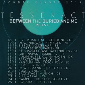 V mesecu novembru se bodo na evropsko turnejo odpravili angleški progresivci Tesseract, ameriški Between The Buried And Me in avstralski Plini. Turneja se bo najbližje v Sloveniji ustavila 21. 11. na Dunaju ter 22. 11. v Munchnu.
