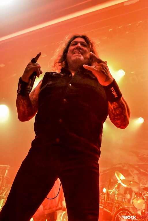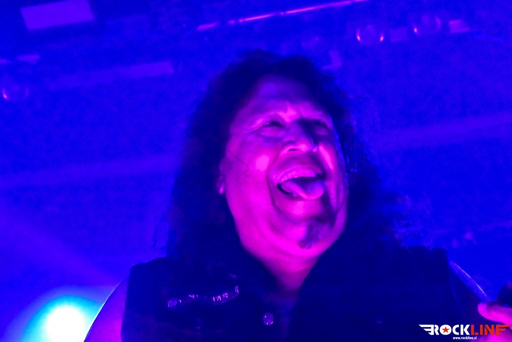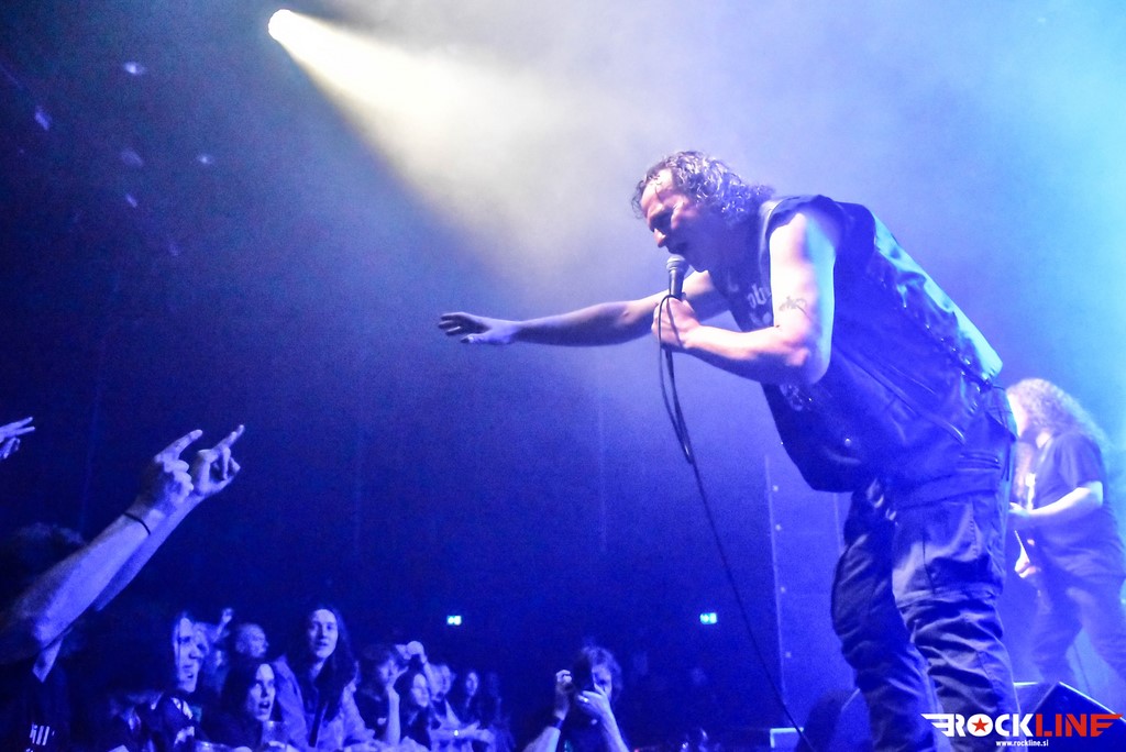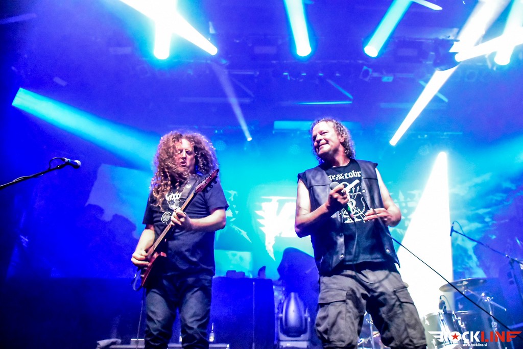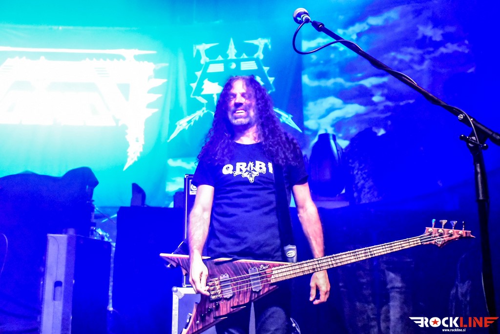 Tudi Testament se niso povsem ognili težavam, saj je tik pred turnejo legendarni Alex Skolnick sporočil, da se bo svojim kolegom zaradi skrbi za obolelo mamo, pridružil šele v drugi polovici turneje. V hipu je na njegovo mesto skočil Phil Demmel (Vio-lence), ki je svoje delo opravil z odliko, tudi sicer pa so Testament izpadli mnogo, mnogo bolje kot v njihovem prejšnjem obisku Kina Šiške. Takrat so pustili malenkost grenak priokus zaradi številnih nepotrebnih solo točk, medtem ko je bilo tokrat povsem drugače. Prvinsko, rušilno, brez lišpanja in zgolj in le vrhunski thrash šus od začetka do konca. Testament so Ljubljano pozdravil z energično Rise Up, legendarni »chief« Chuck Billy pa je publiko v hipu dobil v svojo pest in je iz nje ni izpustil vse do zadnje note zaključne klasike Disciples of the Watch. Testament so dokazali, da so v vrhunski formi; Chuck Billy je rjovel kot zver, Demmel in Eric Peterson sta trgala strune, ritem dvojica pa je zavoljo Stevea DiGiorgia itak neverjetna. Se je pa zares izkazal novinec za bobni, Chris Dovas (Seven Spires), ki je suvereno stopil v ogromne čevlje zadnjih dveh bobnarjev Testament, Genea Hoglana in Davea Lombarda. Dovas se je brez težav lotil tudi zahtevnih Hoglanovih »dvojna stopalka« delov. Niso pa Testament poskrbeli le za odlično predstavo, enako odličen je bil tudi nabor komadov, ki je že na samem začetku postregel z dvema železnima klasikama, The New Order in predvsem ubijalskim The Preacher, ki je publiko pognal v mosh po stopnicah. Od tu pa vse do konca so bile tudi čupe pod odrom ves čas v zraku, legendarni Američani pa so na odru brez usmiljenja nizali rušilca za rušilcem, predvsem death metalsko obarvana D.N.R. in 3 Days in Darkness z The Gathering sta pustošila pred odrom, pa zlovešči The Haunting, kot tudi noviteta z aktualne plošče Titans of Creation, Night of the Witch, med katero je s svojim black metalskim vokalom v ospredje stopil Peterson. Povsem za konec so Testament prišparali najboljši; s trojko Over the Wall, Into the Pit in Disciples of the Watch je Šiška še zadnjič eksplodirala, Testament pa so se v pravi old school thrash maniri poslovili na odru brez klišejskih »we want more« klicev.