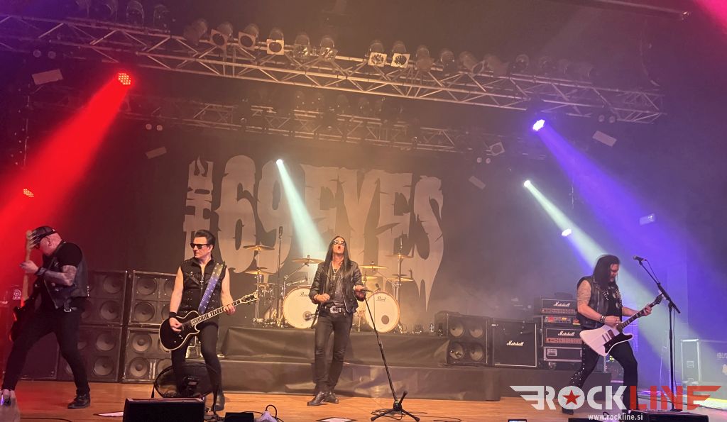 The 69 Eyes so mi bili popolna neznanka, zato sem si na poti dvakrat zarolal napovedano setlisto. Kar sem slišal, mi ni zagrenilo življenja, zazdelo se mi je, da prvega dela koncerta mogoče le ne bom preživel za šankom. Iz zvočnikov se je valila mešanica lahke verzije The Sisters of Mercy, The Cult, Billya Idola in Danzig. Ko sem malce kasneje pogledal na oder, sem lahko dodal vizualije Mötley Crüe iz Shout at the Devil obdobja.