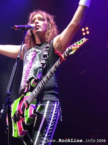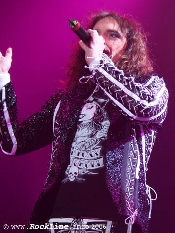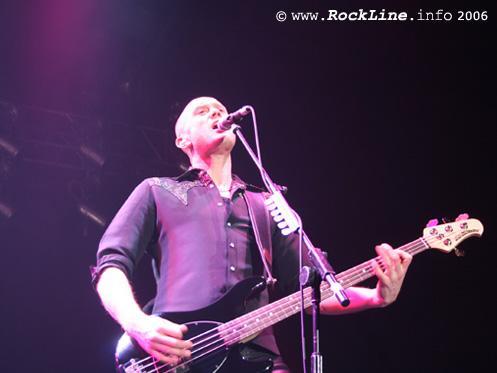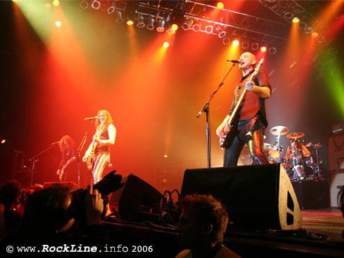 Okrog 20:00 se je prikobalila na oder predskupina Doomfoxx. Ti fantje so nekaj podobnega kot če bi Rolling Stones privil zel zelo naglas, na 11! Sploh po vokalu in linijah. Kot bi križal Jaggerja z Cockerjem. Drl pa se je kot “strgan dohtar”, kar pomeni da je bil vokal resnično močan. Beseda “doom” v imenu skupine, ni tako iz trte zvita, saj nosijo v izrazu siceršnjih nagnjen k “rockerskemu” razvratu, sicer pravi pravcati “feel” skorajšnjega kataklizmičnega razsula. Seveda se je takoj začutilo v “beatu”, da so Britanci, kajti napadli so s čvrstim ritmom preko katerega je bil položen namerno umazan “riffing” kitar, tisti pravi rockerski! Ob tem bi bil celo Keith Richards osupel, da ima kdo na odru lahko še tako “razštelano” kitaro kot on. Fantje seveda niso The Darkness, a je tudi njih očitno zajela “glam rock” mrzlica in na odru so bili temu primerno nališpani. Pevec je spominjal na basista Metallica-e Trujilla (torej imel je indijanski “look”) oblečen, pa kot jazz trobentač, ki je ravnokar prebegnil iz črnskega Harlema. Skratka, brez pričakovanj, slehernih pričakovanj je delovalo pred nastopom Doomfoxx. In neverjetno je, da se je množica tako razkurila in burno odzvala ter ob tem pokazala lepo mero navdušenja nad njihovim nastopom. Odličen žurček in pravšnja izbira za ogrevanje. Iz podivjanih vrst je priletel rdeč modrček, ki ga je pevec obesil na mikrofon. Ali je šlo za uigran trik med njihovim nastopom, ali pa se je kateri najstnici res “snelo” sicer ne vem, a dogodek je lepo popestril njihov nastop. Po 40 minutah so nas pustili znova samevati v dvorani.