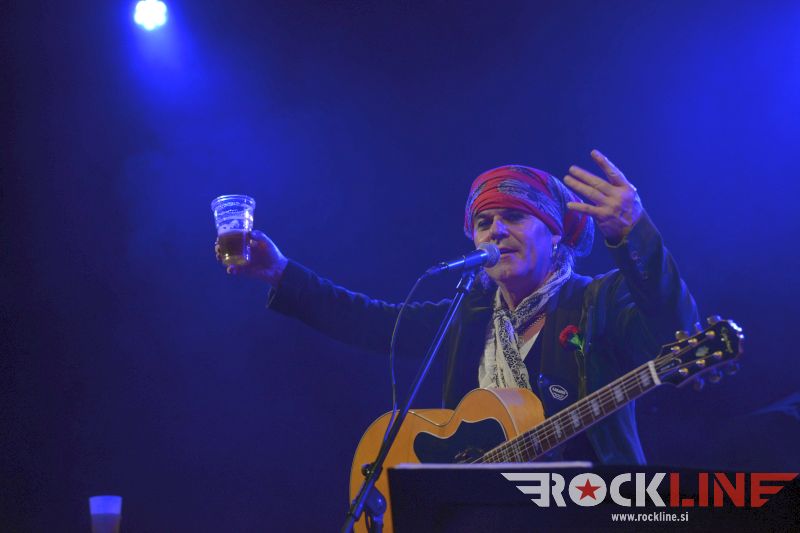 Vse je šlo po planu. Kako minuto preko sedme zvečer se je povzpel na oder Spike. Sam, brez Quireboys. Da. Legenda. Prejebeni vokal The Quireboys. Sam. Z akustično kitaro. Ni sam. S seboj je prinesel na oder orjaško karizmo in izvedbeni naboj! Publika je prihajala na prizorišče, Spike pa je že uvodoma dal vedeti, da je pravzaprav tega večera na sceni največji zabavljač. izvajal je večinoma material zasedbe The Quireboys. Vokal, kitara in v premorih obilo zabavnega pripovedništva, ki se lahko porodi le na umu Britanca. Črni humor in zbadanje, podžiganje publike. Vseskozi. Tudi s pivom v roki. Starega kozla namreč še naprej zanimajo dobre punce, dobra pijača in rezultati Premier Lige. Dlake ne bo menjal. Nikoli. Bistvo vsega je to, da Spike ni zafušal. Pri njemu deluje alkohol ravno obratno, če smem biti malo sarkastičen. V kolikor ga ne bi pil, bi verjetno kiksal. Jasno je bilo, da ostaja tudi v letu 2023 orjaški podpornik in ljubitelj pijač s prebitkom alkohola, kar je zanj od nekdaj zaščitna znamka, a pod črto. Mož ni zafrknil ničesar. Izvedel, odigral, odpel je vse odlično. Brez kiksov. Uglasitev kitare je bila brezhibna (Tomaž Domicelj uči se, op. p.). Vokalna karizma izvedbene širine ostaja grabežljiva in možakar s svojim humorjem vred, skrajno nalezljiv. Potem se zgodi: “She’s my ex-wife!”, pokaže Spike s prstom na dekle, ki mu je bila očitno všeč v publiki in se loti The Quireboys klasike I Don’t Love You Anymore. Tekel je tudi viski v potokih odkar ga je pustila (Raining Whiskey), mož pa je zasolil koncert celo z integracijo The Animals klasike House Of the Raising Sun. Bila je tudi There She Goes Again. Malo ljudi se je zganilo ob njeni izvedbi. V Britaniji, bi v takšnem primeru pel cel klub s Spikeom. Pri nas pa? Niti ni pomembno. Kakorkoli, publika je uživala, zabaval pa se je tudi Spike in publiki vseskozi nazdravljal s pivom. Dajte možakarju pivo torej! Neverjeten je Spike. Vokal oster kot britev, opasan z golo akustiko. Čustva oživijo. Grabijo. Mož ostaja mit, legenda. Odlična uvodna pustolovščina torej.