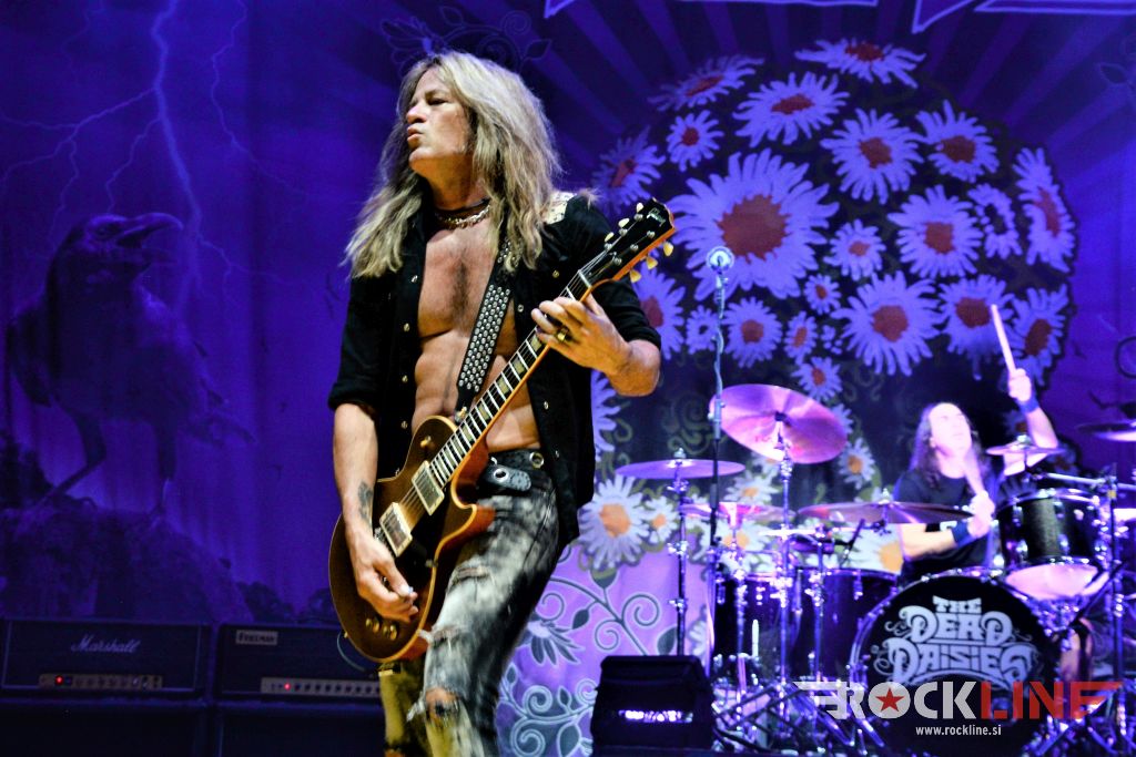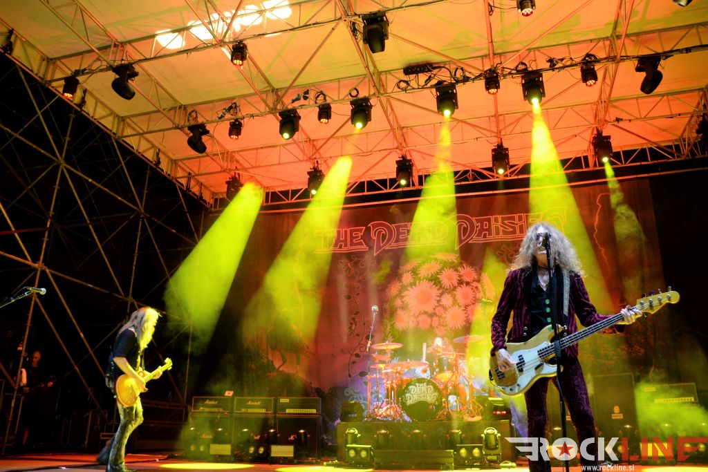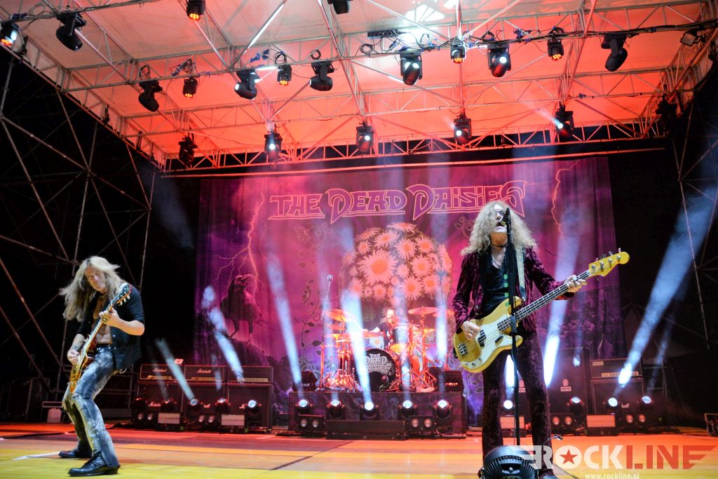 Toliko za uvod. Pred nastopom The Dead Daisies je občinstvo razgreval lokalni kitarski matador oziroma kitarski as Arthur Falcone s svojimi Stargazer. Možakar je na sceni četrt stoletja, a je šele v lanskem letu izdal svoj tretji studijski album imenovan »Straight To The Stars«. Njegov ‘Yngwie-like’ pristop igranja, je še kako zaznaven, saj so ne le solaže, pač pa tudi kompozicije večkrat izrazito neo-klasično zasnovane. Stargazer so torej kvintet, ki je nekakšen tržaški odgovor na pridobitve rocka sedemdesetih, le da je vsa reč pač odigrana z višjim zasunom muskulature. Ljubitelji Japoncev Loudness, bi tule znali priostriti uho. Smel in zabaven nastop razigranega kvinteta z dopadljivim vodilnim vokalom.