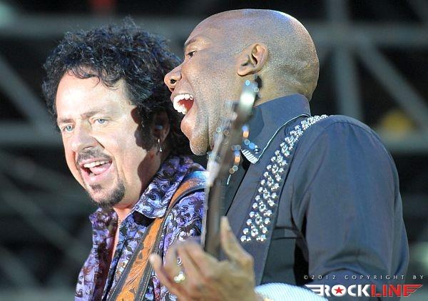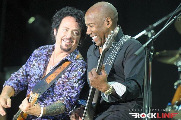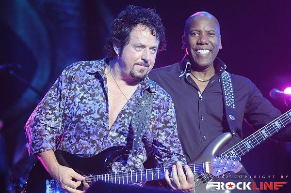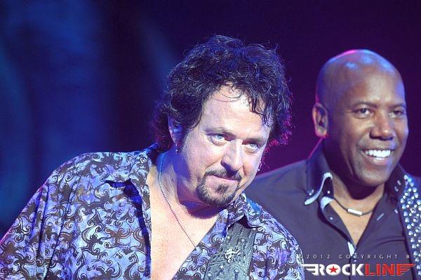 Do konca smo slišali še dva hita iz Toto zapuščine. Stop Loving You, kjer je na koncu dobil svojih pet minut bobnar Simon Phiilips, ob spremljavi Lukatherja in Easta je pokazal nekaj izjemnih vragolij iz svojega bogatega repertoarja. Zaslišal se je uvodni klavirski akord….Hold the line. Njihov prvi singel s prvega albuma imenovanega Toto. Ena izmed treh najbolj prepoznavnih Toto stvaritev. V ospredje je stopila Jenny Douglas McRae in skupaj z Willamsom pričarala drugačno, a še zmeraj okusno verzijo te skladbe. Tam kjer se pesem v originalu konča, jo raztegnejo in sledila je Lukatherjava šolska ura, ki je pomenila nič manj in nič več kot popolno razodetje šeststrunske teorije. Postregel je z izjemno solažo, ki ji na veselje prisotnih ni in ni bilo konca. Zadeva se je počasi stopnjevala do vrhunca, Luke pa je plul od pretanjenih, mehkobno javkajočih previdno vtkanih tonov v pravo neurje rušilne erupcije s svetlobno hitrostjo urezanih arpeggiov. A Lukeova lekcija ni zaključila skladbe, saj jo je nadaljevala vokalna ekshibicija Jenny Douglas McRae, kar je pomenilo, da je tako nadgrajena Hold The Line eden od čarobnih vrhuncev Toto koncertov trenutne turneje.
