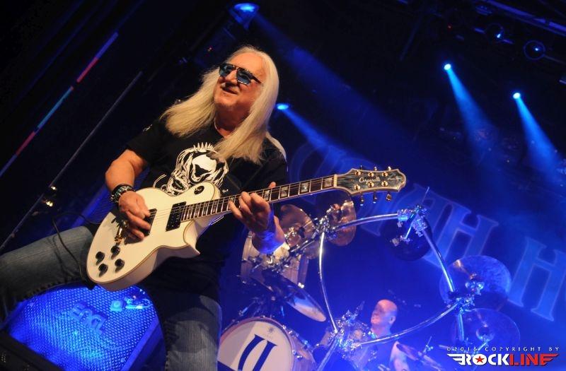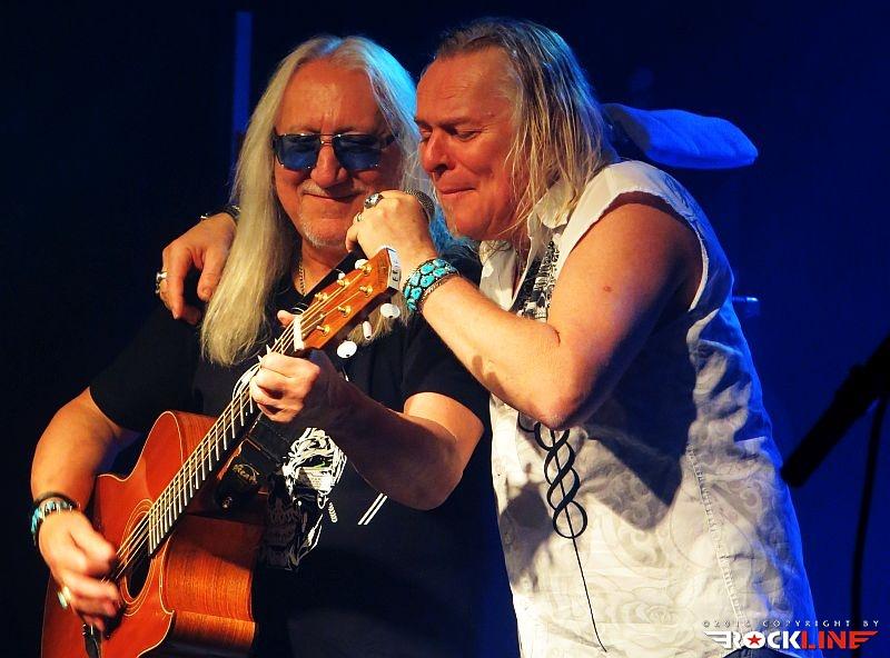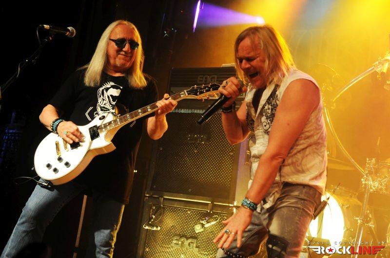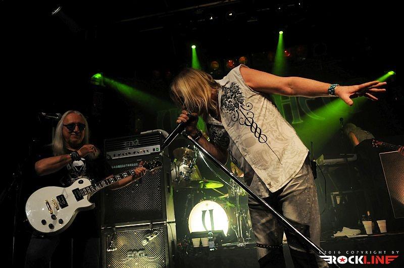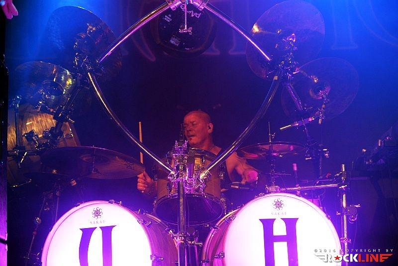 Szene je bil nabit. Do poslednjega kotička. Komaj si dihal v klubu. Temperatura je polagoma naraščala iz minute v minuto. Seveda publika po večini starejše branže, to je generacije, ki je preživljala teenagerska leta skozi sedemdeseta, ko so bili Uriah Heep na komercialnem vrhuncu in na očeh vse svetovne rock’n’roll javnosti. Ura je obrnila kazalce na pol deseto! Ljudje oživijo, sprva blaga luč osvetli Phila Lanzona na klaviaturah, le ta se kmalu spremeni v močan snop modro vijočilne svetlobe, ko riše klaviaturist uvodne tone Uriah Heep klasike Gypsy. Trd riff, trda rockovska otvoritev. Po okusu fanov. Klasika, ki ne sme manjkati v repertoarju. Že uvodoma, ko je bend zasedel oder in se razletel po njem, je bilo jasno, da bo to nov odličen koncert skupine. Vse je super klapalo skupaj. Bernie Shaw v odlični vokalni formi dneva, vokalne harmonije – to je elementarna zaščitna znamka klasičnih Uriah Heep kompozicij, briljantno oddelane. V tem oziru je basist Dave Rimmer, v tretjem letu bivanja v postavi skupine, naposled v polnem iztržku prevzel vse naloge pokojnega Trevorja Bolderja. V kombinaciji s Philom Lanzonom n Mickom Boxom je trojec nudil fenomenalno podporo Berniejevemu vodilnemu vokalu. Rekapitulacija klasičnih prvin Uriah Heep zvoka na čelu z vokalnmi harmonijami, je to pot fenomenalno funkconirala. V mislih imam zlasti spoj med čokatim Hammond zvokom klaviatur in nabrušenimi kitarskimi frazami Micka Boxa, medtem ko je bobnar Russell Gilbrook znova dostavil noro bobnarsko predstavo.