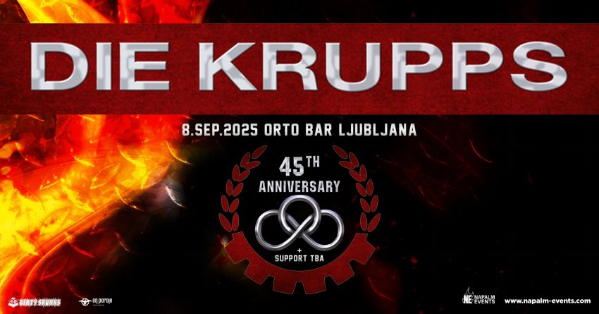 V ponedeljek, 8. 9. 2025 bodo v Ljubljani (Orto bar) nastopili legendarni nemški predstavniki industriala Die Krupps! Na prihajajoči novi turneji, na kateri bodo Die Krupps obiskali tudi slovensko prestolnico, praznuje skupina 45. let delovanja!