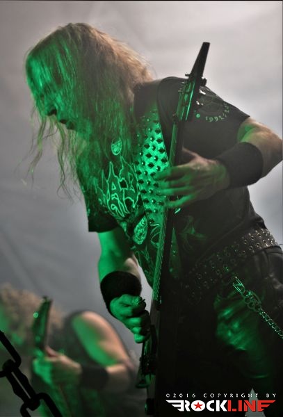 Glavne zvezde večera Vader nastopajo od leta 2011 v nespremenjeni postavi. Ekipo vodi poglavar Piotr Wiwczarek (growl, kitara) družbo pa mu delajo Marek Pająk (kitara), Tomasz “Hal” Halicki (bas kitara) in James Stewart (bobni). Že v januarju letos, ko so nastopili pred Kreator v CUK Kino Šiška, so navdušili z izvedbo celotnega prvenca “The Ultimate Incantations”, tokrat pa so ob 35. obletnici delovanja, šli še bolj na roke starim fenom. Set lista je bila v polovičnem odmerku podrejena prvim trem albumom, k temu pa so dodali še dva komada iz četrtega “Litany” ter z izjemo “Welcome to the Morbid Reich”, izvedli iz vseh preostalih albumov vsaj po en komad. Pri Vader godi neverjetna determiniranost. Fokus s katerim pridejo na oder. Govorov med premori ni bilo mnogo, skoraj nič, zato pa so Vader znova prevzeli z izjemno izvedbo, ki je opremljena z vzpstavitvijo apokaliptične, mračne, uničujoče atmosfere. Predvsem v prvem delu so Vader neusmiljeno klestili klasike. Večji oder kluba je omogočal, da se je Marek lahko večkrat preselil tudi na sredino ali desno stran, kar je uspešno razijalo navidezno statičnost zsedbe, saj je Piotr nenehno prikovan za mikrofon. Bend igra ogromno in to se čuti na izredni uigranosti, odrski nepopustljivosti in do neke mere, neverjetne zagrizenosti. Oba kitarista si spretno izmenjujeta solaže, ritem linija je ubrana in rušilna, masivni zvočni zid grmečih riffov reže v drobovja. Ura in dvajset minut se je obrnila, kot bi mignil. Vader so neusmiljeno besneli iz komada v komad ter spravili kakih 200 glav v stanje hipnoze!