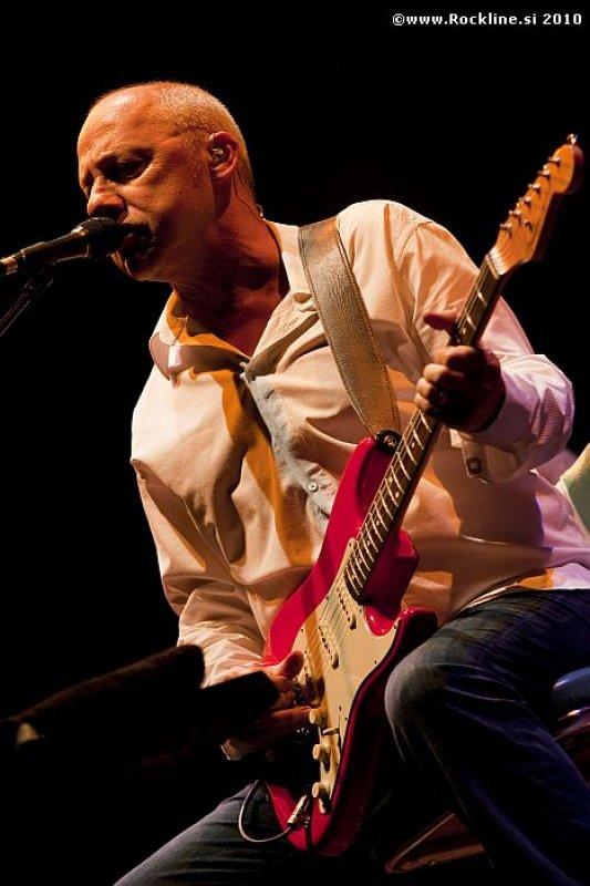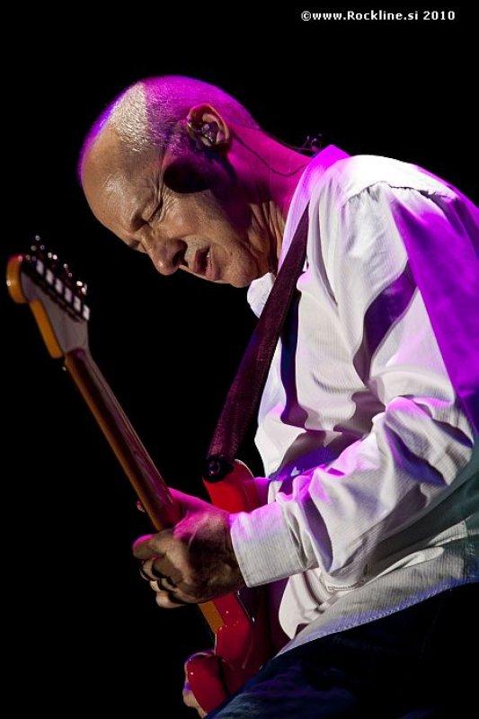 Mark Knopfler je več tisoč glavi množici predstavil vrhunce solistične glasbene poti, manjkati ni smelo niti nekaj utrinkov aktualnega albuma, poleg pa je seveda pristavil še malenkost predvidljivega brskanja po Dire Straits zapuščini. Če se za trenutek najprej ustavimo kar pri slednjih. Mark je predvidljivo posegel po “Telegraph Road”, “Brothers In Arms”, “So Far Away” ter seveda “Sultans Of Swing”, ki je od omenjenih izzvenela daleč najbolj rezervirano. Ostanek se je sestavil v rutinsko obujanje nostalgičnih spominov. Navdušila je predvsem interpretacija materiala post Dire Straits obdobja.Ob že običajnih “What It Is”, “Hill Farmer’s Blues” in “Sailing to Philadelphia” je Mark razmetaval s pregovorno briljanco kitarske igre, ki se je vztrajno metala na barve sentimentalnosti.