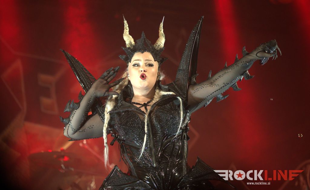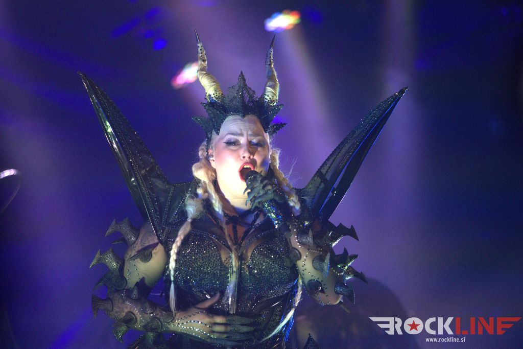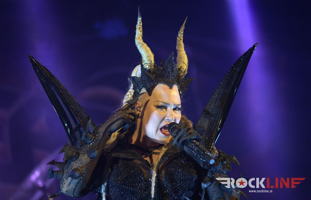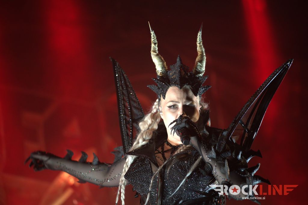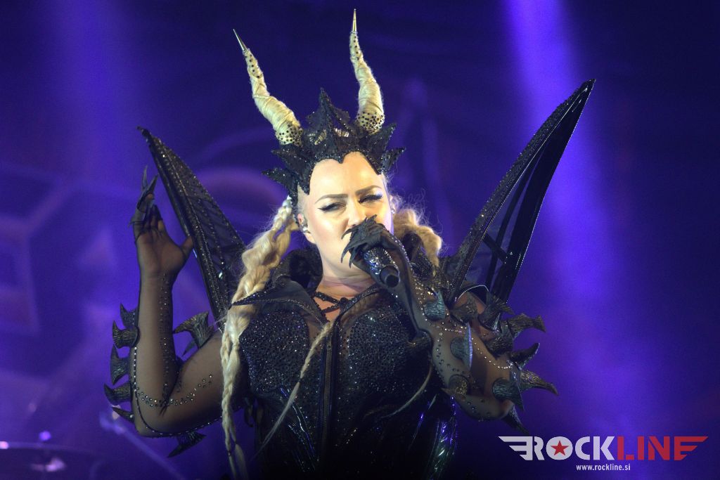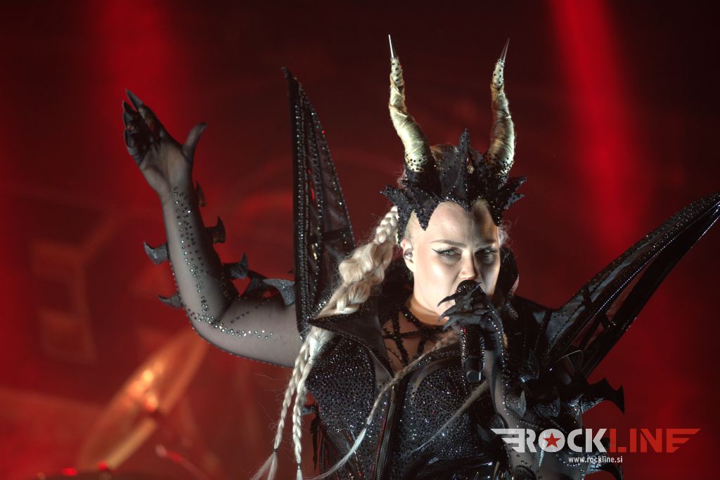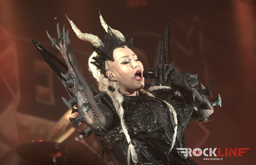 Zvezde dogodka so prikorakale na oder ob spremljavi res mogočnega in masivnega zvoka, ki se je izkazal za super udarnega ob prvih taktih otvoritvenega Straight to the Heart. Noora je v mojih očeh in ušesih trenutno najboljša metal vokalistka, in to brez konkurence. Njen kot britev ostri vokalni stil nosi celoten bend in njegovi glasbi doda prepotrebno ostrino, ki jo izgublja iz albuma v album. Teh se je v dobrih 14-ih letih delovanja nabralo že sedem, kar predstavlja zavidanja vredno kontinuiteto. Na koncertih skupina izvaja stvaritve z zadnjih štirih albumov, kajti finančna pogača avtorskih pravic je pretanka, da bi jo delili še z ustanovnim članom, izgnanim kitaristom Antonom Kabanenom. Na žalost se je finski sekstet osredotočil na ušesom povprečnega mimobežnega “metal” oboževalca prijaznejše skladbice iz diskografije, tako da je malce trše zvoke predstavljal le tercet Straight to the Heart, Last Goodbye in Bastard Son of Odin, delno pa še zaključni Wings of Light. Preostanek setliste so sestavljale plesne poskočnice, ki so zbrano publiko pripravile do zglednega sodelovanja, ki je pomagalo zakriti dejstvo, da nas je bilo vseh skupaj le okrog 400. Uigran bend, dober zvok, energičen performans in resnično nora Noora so poskrbeli za vroč zaključek večera in potešitev vseh melodij željnih obiskovalcev. Ne morem mimo Noorine oprave, ki spominja na rahlo zaobljenega Ksenomorfa iz filmske sage o morilskih nezemljanih in resnično impozantno zavzema centralno pozicijo na odru.