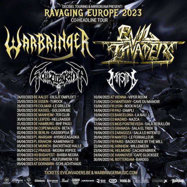 Sloveniji najbliže se Warbringer ,Evil Invaders, Schizophrenia in Mason ustavijo 10. 4. 2023, ko se oglasijo na Dunaju in tamkajšnjem klubu Viper Room.