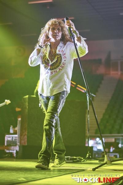 David in njegova Whitesnake tovarišija vrhunskih inštrumentalistov so na oder prikorali s pričakovano avtoriteto in z otvoritvenim »Bad Boys«, ki izvira iz njihovega slovitega, superuspešnega albuma »Whitesnake« (1987), publiko v trenutku spravili v delirij. Gospod Coverdale na odru še vedno izžareva izjemno vitalnost in karizmo ter s prepoznavnimi odrskimi gibi ter občasnim pasjim zavijanjem še naprej spominja na tistega neugnanega šarmerja iz video spotov, ki je v osemdesetih osvojil igralko in (zdaj že dolgo bivšo) ženo Tawny Kitaen, čeprav je že nekaj časa ponosen dedek. Whitesnake uspešnice so si sledile ena za drugo, čeprav so po pričakovanju prevladovali komercialno uspešnejši dosežki iz druge polovice osemdesetih, ko so bili David in njegovi sotrpini za približno tri leta ljubljenci ‘MTV generacije’ in so se njihovi video spoti dan za dnem vrteli po televiziji.