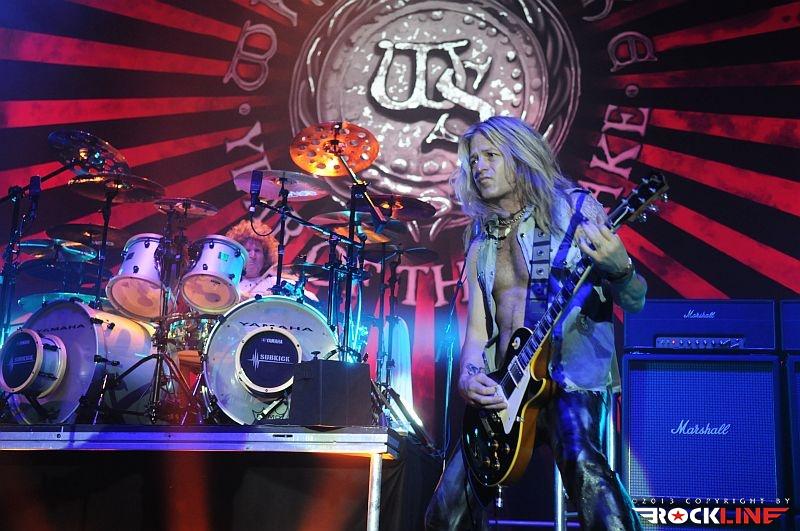 Velik magnet za oči je bobnar Tommy Aldridge. Mož, ki šteje že 62 let, ohranja svojo vitalnost in po bateriji razbija kot za šalo, ob tem pa deluje skrajno sproščeno, celo igrivo. Je pravi šovmaker, kar je dokazal s svojo prepoznavno bobnarsko točko pri komadu Steal Your Heart Away, saj jo je zaključil kar z igranjem na gole roke, brez paličic. Zaradi sloga razbijanja, pri katerem se pod odrom ves čas vidi zgolj vihranje njegove čupe, se je v moj čelni reženj nevede prikradla podobnost Aldridgea s še enim bobnarskim velikanom, Mikkeyem Deejem (Motörhead). S prikazom pestre palete svojega znanje kakopak nista varčevala niti Aldrich na desni oziroma Beach na levi strani odra. Njuno kompaktno sodelovanje je vrhunec doseglo z izmenično solo točko. Kljub njenemu vsakodnevnem ponavljanju jima spričo tehnične perfekcije in čustvene konotacije iz njunih šeststrunskih inštrumentov vedno znova uspe dostaviti poslušljivo mitraljeziranje in s tem šefu omogočiti nekaj minut predaha, v času katerega se ta verjetno z obema rokama oklepa kisikove bombe. Nekaj drobtinic je v drugi polovici nastopa pripadlo tudi basistu Michaelu Devinu, katerega orglični izlet je služil kot uvod v skladbo Fool for Your Loving.