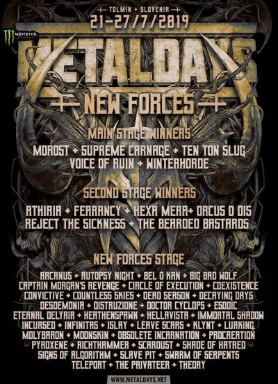 Medtem, ko se pripravljamo za Winterdays of Metal 2018.2, do katerega je še dobre tri tedne, pa so že znane »Nove sile« Metaldays 2019. New Forces bendi bodo med 21. in 27. julijem 2019 nastopili predvsem na New Forces odru, zmagovalci letošnjega festivala pa bodo zasedli tudi prvi in drugi oder.